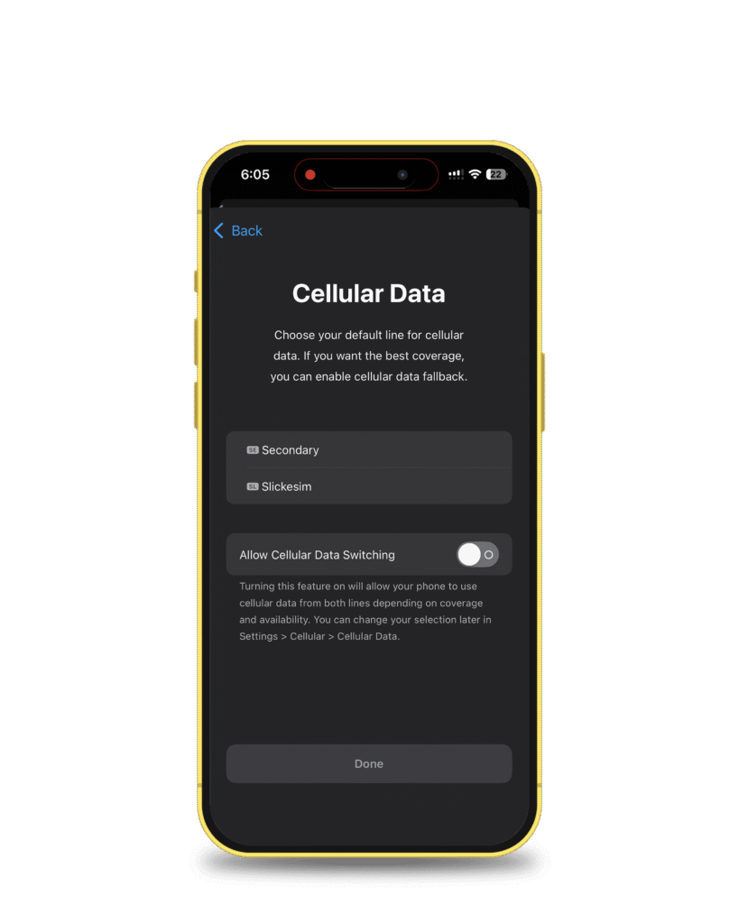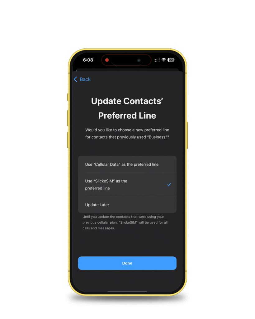 Select Use Slick eSIM as the preferred line and tap Done.