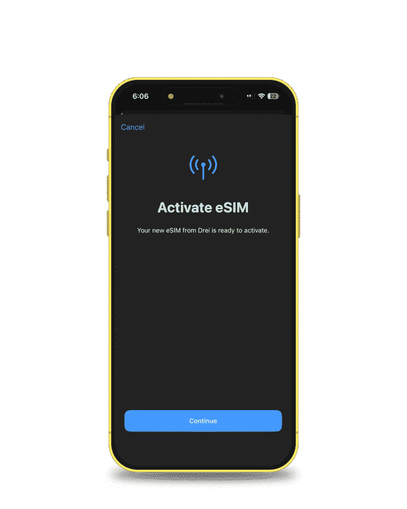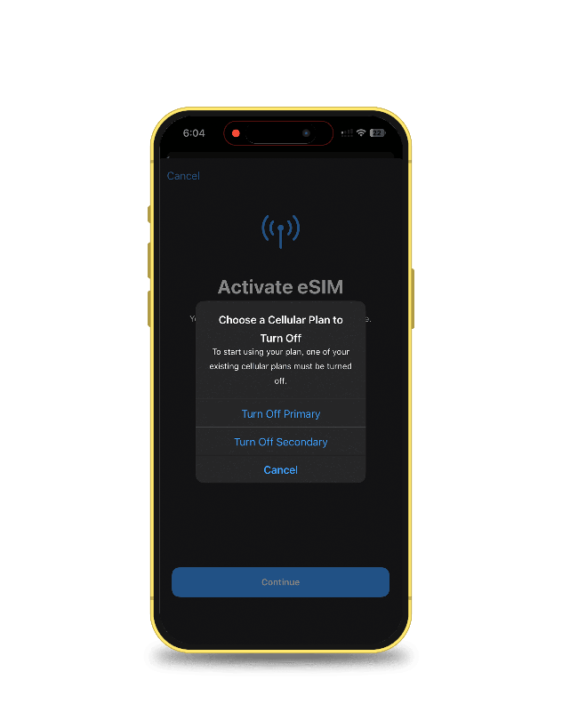 When your iPhone screen says Activate eSIM, tap Continue.
