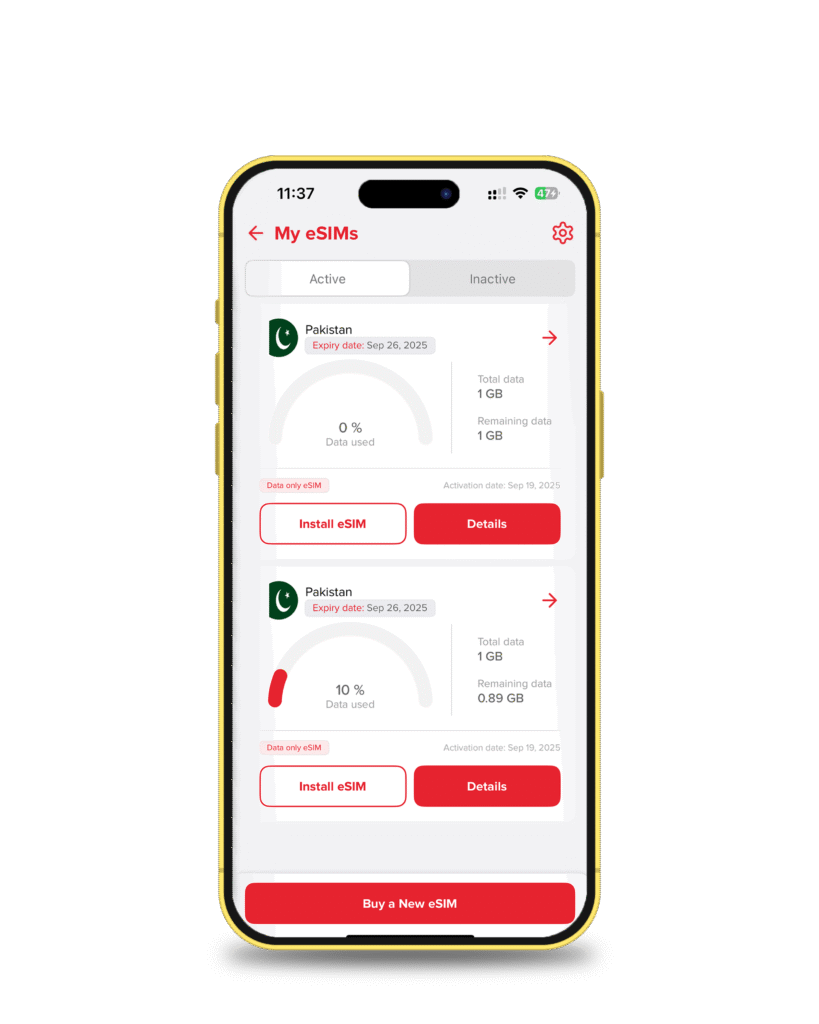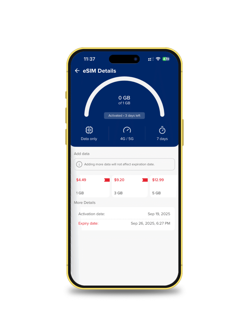 From the home screen of the app, tap on eSIM. That’s your gateway to global data freedom.