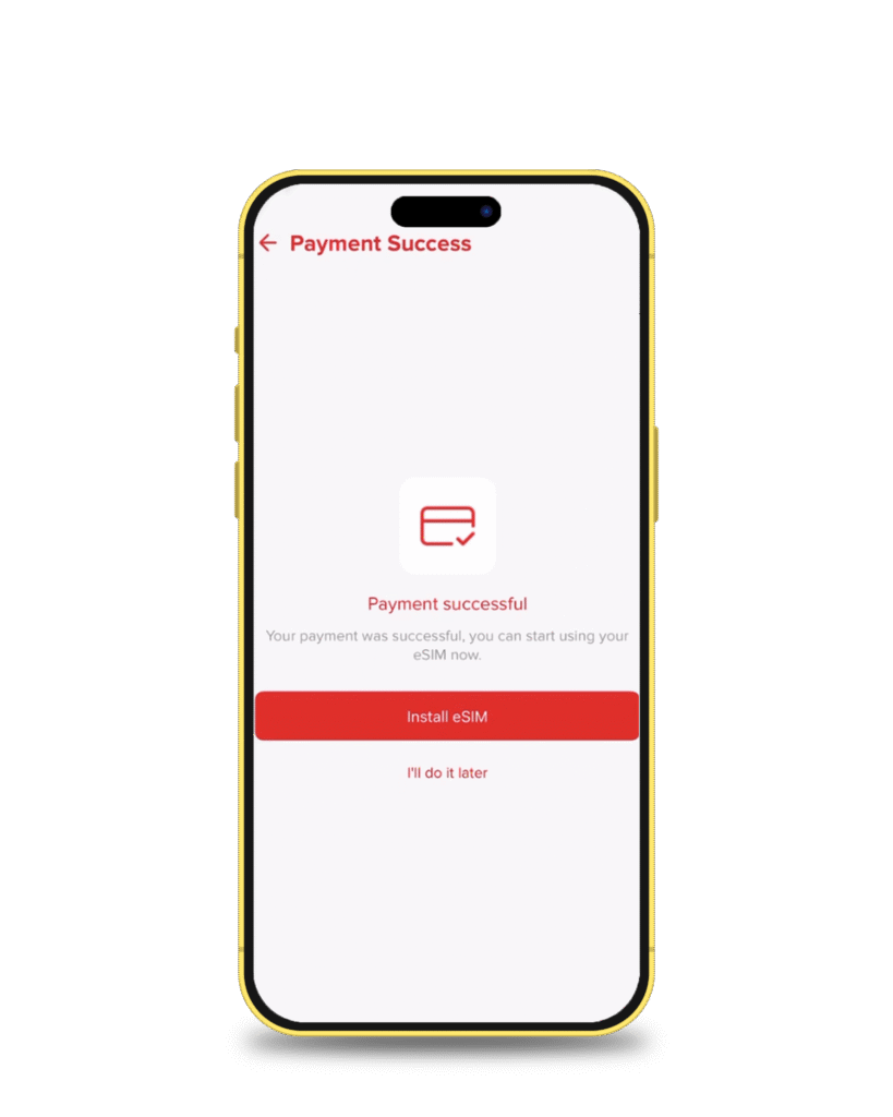 Once the transaction clears, Slick will flash a confirmation screen: Payment successful. That’s your green light to move on. Tap Install eSIM.