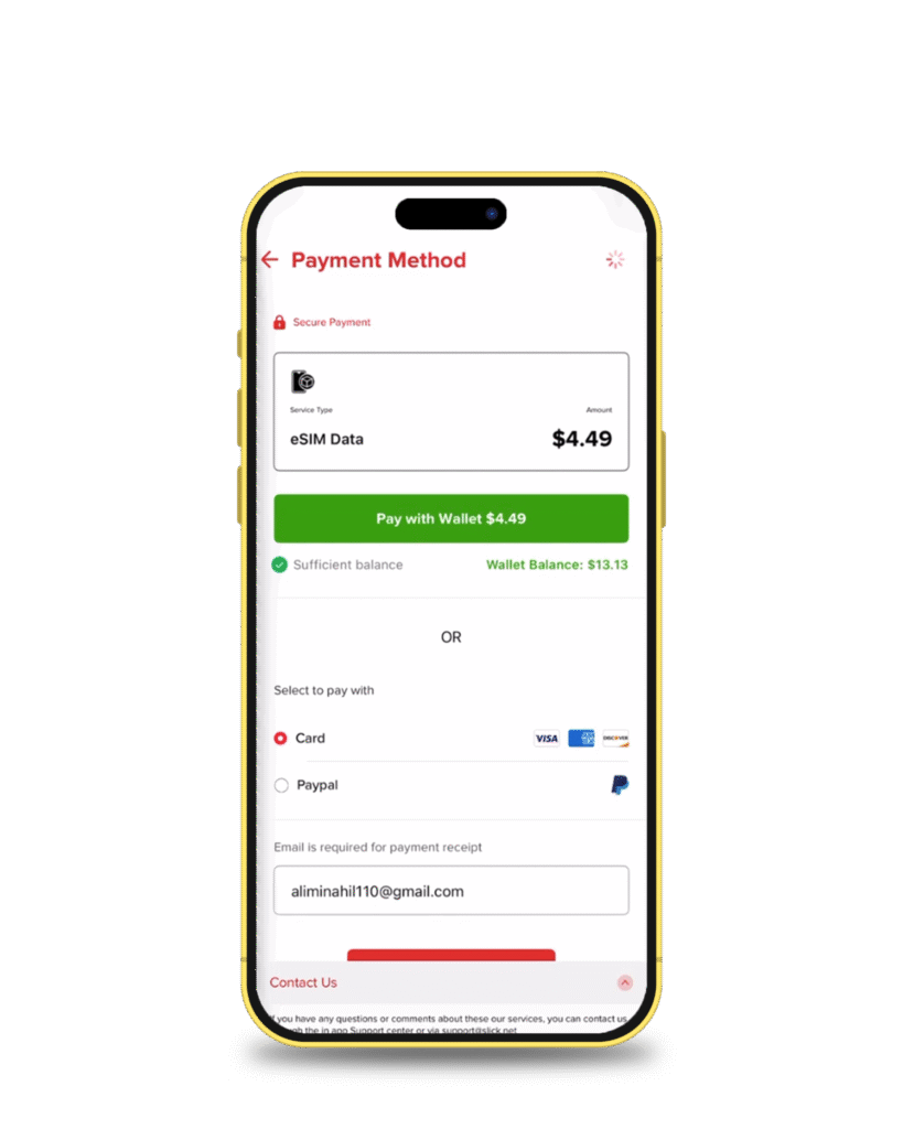Open the Slick app, choose your country and plan, complete the payment, then tap Install eSIM. You can install it directly or by scanning a QR code. Follow the on-screen instructions to finish activation.